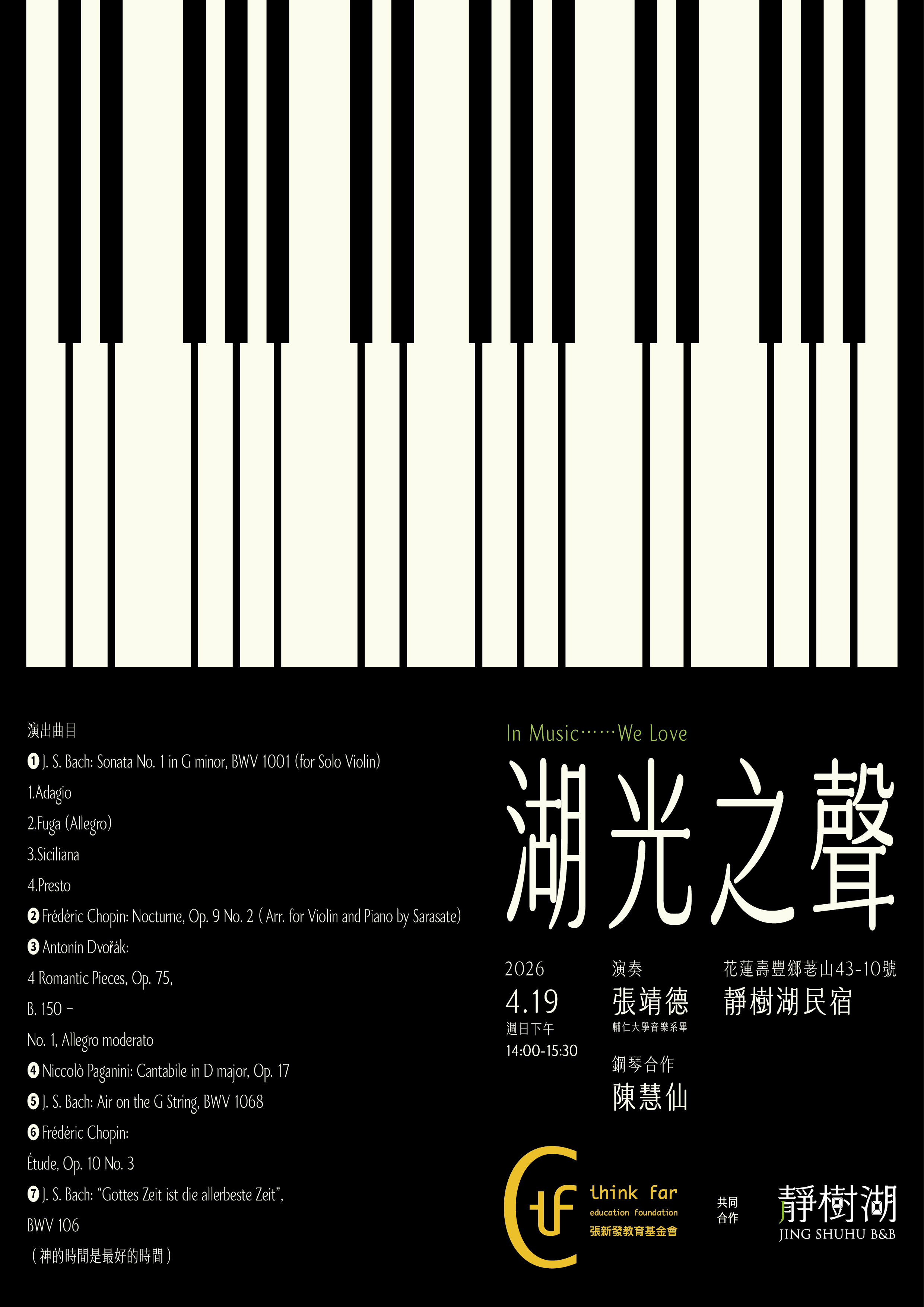 Think Far音樂會 4/19周日午后14:00-15:30 花蓮民宿 靜樹湖 www.jingshuhu.com.tw https://share.google/4l1V...